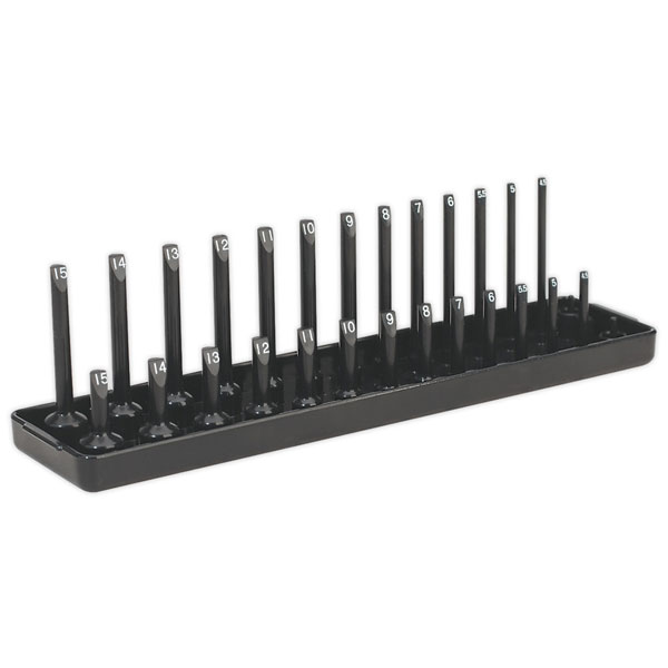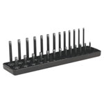 Allows you to maintain a tidy workstation with sockets always to hand. Accommodates 14 standard and 14 deep, 1/4"Sq drive sockets from 4 to 15mm.