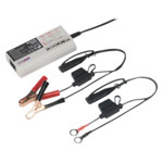 Supplied with multi-fit charger cables featuring crocodile clips, vehicle accessory socket plug and hard-wired terminals incorporating a water tight plug and socket for permanent installation making it great for motorcycles and cars.