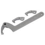 Hardened and tempered drop-forged Chrome Vanadium steel with recessed panel and satin finish. Specially designed for use with slotted retaining rings. Hook and pin interchangeable hinged arms.