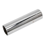 Spark plug sockets from Sealey designed for use where plug clearance is tight. Standard depth, thin wall, 12-point 3/8in square drive 14mm socket with magnetic insert to retain spark plug.