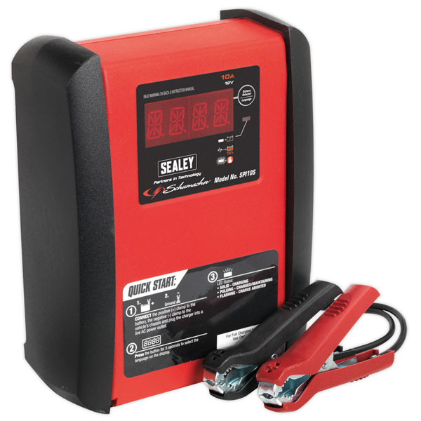 Fully automatic microprocessor controlled battery charger and maintainer, featuring patented Speed Charge technology. Charges the battery up to three times faster than conventional battery chargers without damaging the battery. Heavy-duty sturdy case with no-nonsense controls and LED status indicators. Battery pre-sets include conventional lead acid, calcium, AGM/GEL, leisure and stop/start batteries. Fully automatic float mode ensures the battery is kept fully charged, maintained and ready to use.