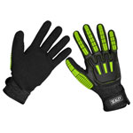 Impact resistant TPR material to back of the glove to help protect knuckles, fingers and thumbs during use.