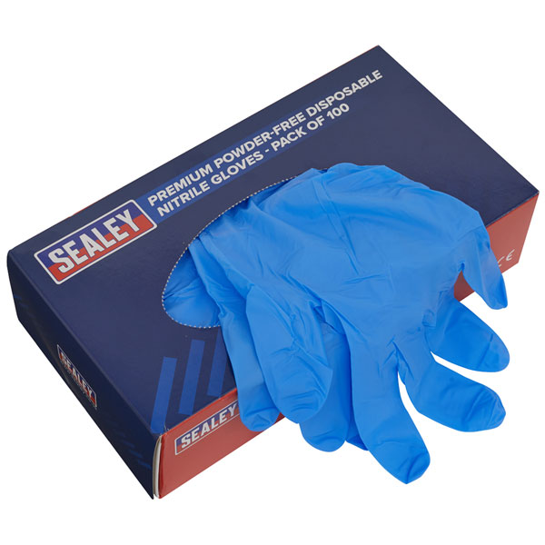 Sealey SSP55L Premium Powder-Free Disposable Nitrile Gloves Large Pack of 100