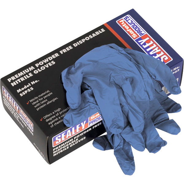 A pack of disposable nitrile gloves from Sealey offers a high degree of protection against a variety of chemicals. More durable than standard latex gloves. Provides excellent protection whilst being light and flexible. Nitrile material, ideal for people with latex protein allergies.