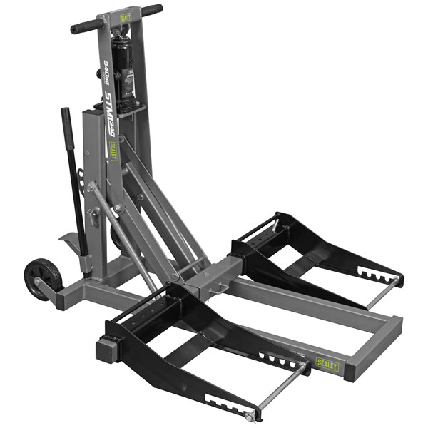 A kick pedal to the rear of the lift makes it easy to tilt it on to its heavy-duty wheels, for transporting or positioning.