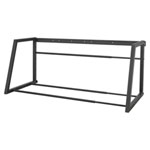 Wall or floor mounting tyre rack helps keep work area tidy. Steel construction with a powder coated finish giving corrosion resistance. Adjustable width to suit space available. Holds up to 90kg when wall mounted.