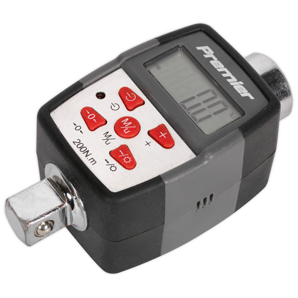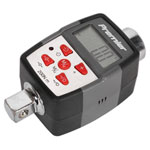 Designed for use with a standard ratchet or breaker bar. Ideal for work around the engine bay and the tightening of wheel nuts to factory specifications. Large LCD display with LED/audible alarm indicating achieved and target torque levels. Selectable readings in Nm, lb.ft, lb.in or kg.m. Accurate to ±2% of stated capacity and operates in either direction. Features angle mode, eliminating the need for angle gauges and protractors providing an accurate and fast way to measure torque plus angle tightening sequences. Will also accumulate angle measurement when multiple turns are required, ideal for use where access is restricted. Includes auto shut-off. Supplied with test certificate and storage case.