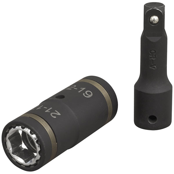 4-in-1 Double ended impact socket, 17 x 21, 19 x 22mm with 75mm 1/2""Sq drive impact extension bar.