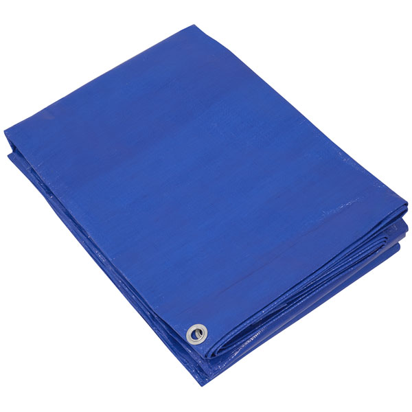 Durable blue tarpaulin ideal for providing temporary cover in farm, garden, bodyshop, garage and leisure environments.