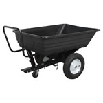 Rustproof polypropylene trailer bed with heavy-duty steel frame. Fitted with pneumatic tyres for transport over the toughest terrain and single locking castor wheel. Features foot pedal release mechanism for tipping trailer bed. Easily and quickly converts into hand cart with foldaway towing hitch and sliding hand rail.