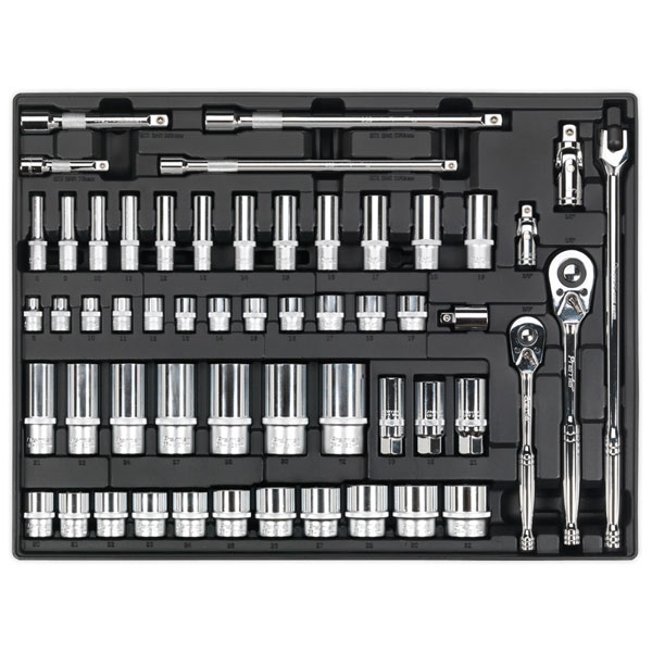 Sealey TBT31 Tool Tray with Socket Set 3/8" and 1/2"sq Drive 55pc