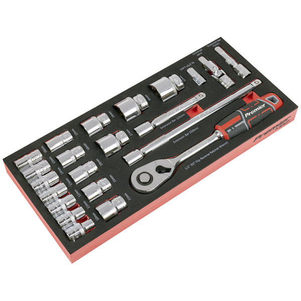 Sealey TBT42 Premier Socket Set with Tool Tray 1/2"Sq Drive 22pc