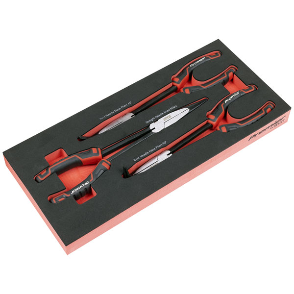 Sealey TBT58 Premier Long Needle Nose Pliers Set with Tool Tray 3pc