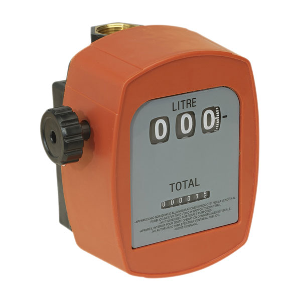 Volumetric nutating disc meter with three digit resettable display and six digit total display. Unique filter and flange assembly allows meter to be positioned in four configurations. Suitable for use with TP91224 and TP955.