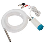 Robust and compact portable pump for use with diesel, non-aggressive chemicals and clean or dirty water. Suitable for re-fuelling/fluid transfer of plant, agricultural and marine equipment on site. The pump is supplied with a 3m outlet hose and stainless steel nozzle plus a 4m battery cable with clips. Will fit through a Ø54mm aperture to allow emptying of containers. End cap can be unscrewed for periodic cleaning of the filter.