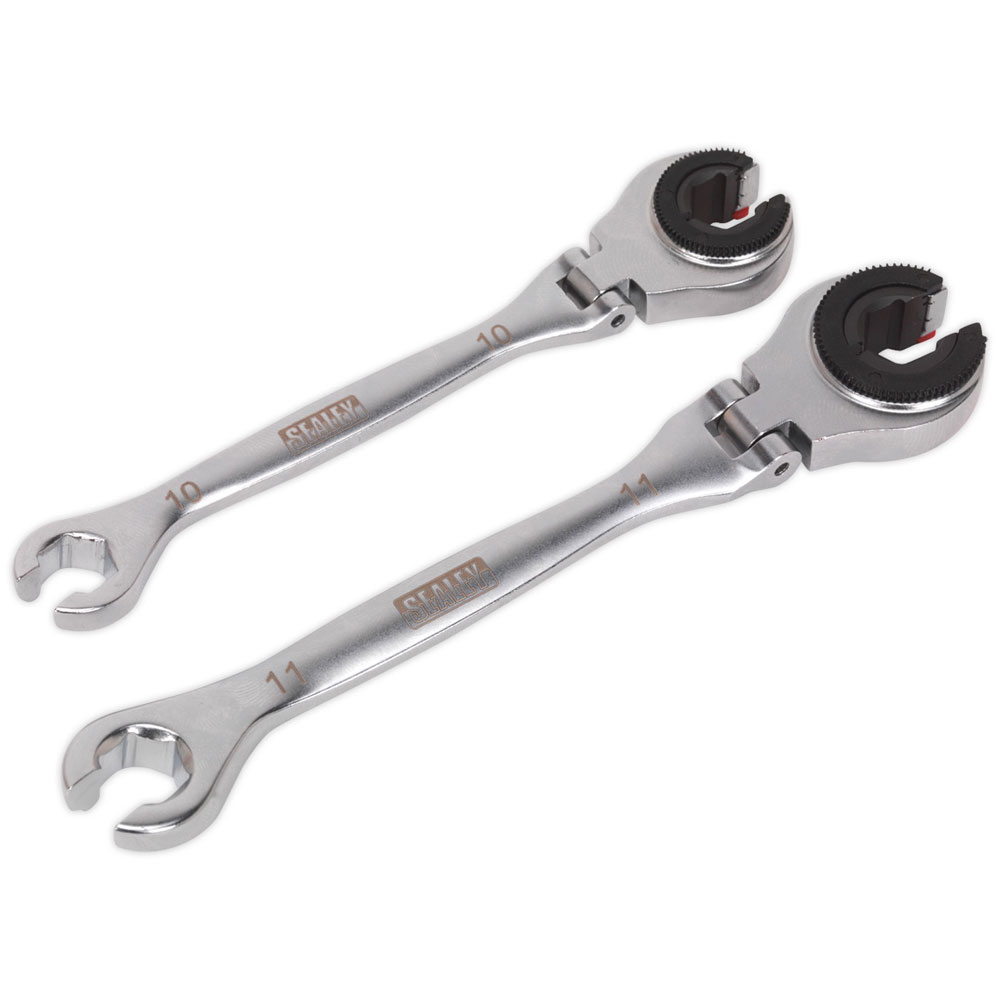 Sealey VS0356 Brake Pipe Ratcheting Spanner Set 2pc