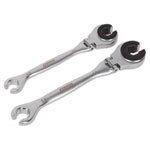 Manufactured from Chrome Vanadium steel with a fully polished satin finish. Features 72-tooth ratchet with flexi-head for limited access applications and fixed head for initial loosening of the nut. Ideal for most brake pipe fittings.