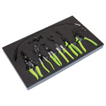 - • A comprehensive hose clip plier set, features heavy-duty construction with ratchet locking mechanism on most pliers.
