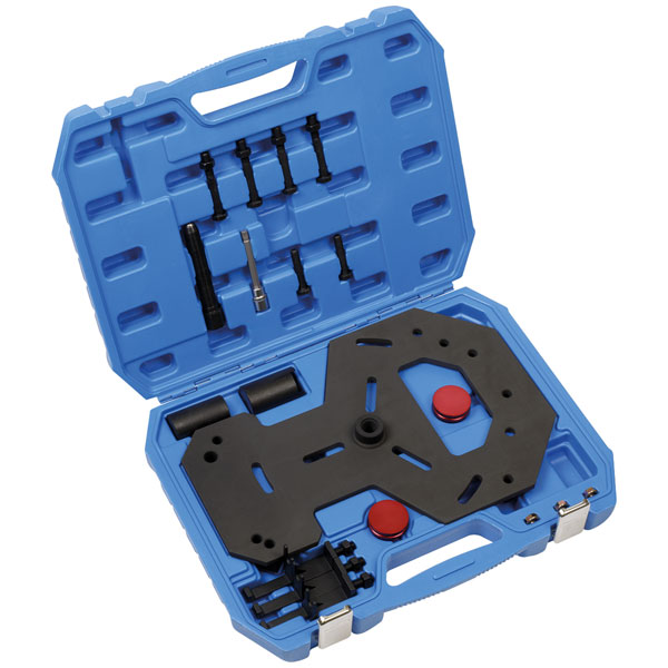 Clutch removal/refitting tool kit designed for Ford Dual Clutch systems. Suitable for DPCS6 and 6DCT250 6-speed gearboxes fitted to Fiesta, Focus and EcoSport vehicles. Equivalent to OEM 307-675. Supplied in a storage case with instructions.