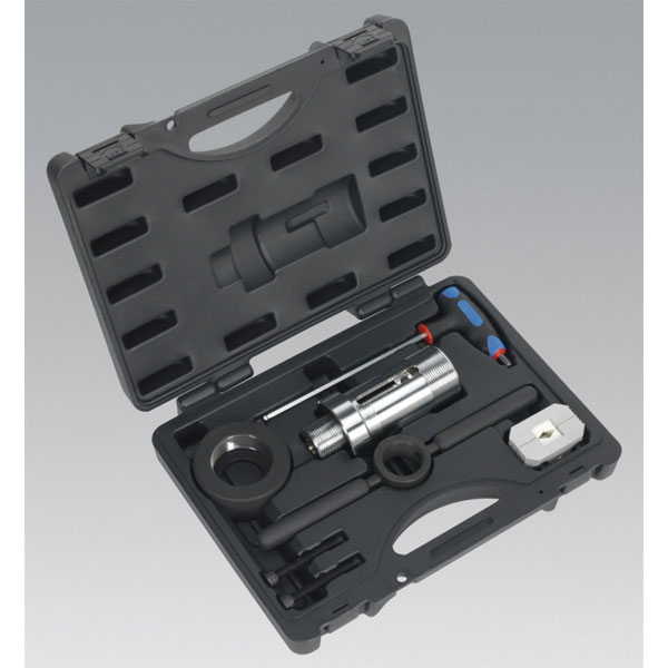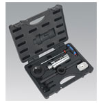 This rebound spring strut tool from Sealey allows the piston to be held safely in the extended position when replacing internal rebound spring shock absorbers (MacPherson Strut). These shock absorbers are used to reduce vehicle roll and in some cases replace the use of the anti-roll bar which is becoming more popular on modern vehicles. Features a piston shaft clamp with nylon jaws and telescopic puller.