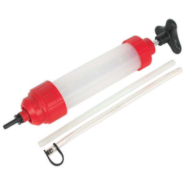 Multipurpose syringe with Viton® seal, ideal for the transfer of oils/fluids to and from vehicle components such as gearboxes and differentials. Translucent body allows easy inspection of oils and fluids.