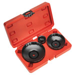 Cap type filter wrenches for vehicles fitted with Renault dCi engines 1.5, 1.9, 2.2 and 2.5. Also compatible with some Nissan and Vauxhall/Opel vehicles. Supplied in storage case.