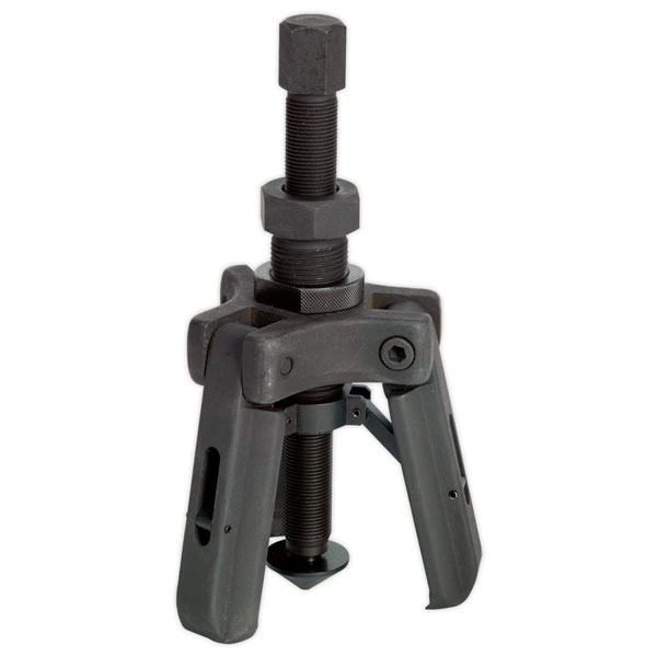 Designed for the removal of the wheel bearing inner race from the vehicle hub. Usually the inner race is cut from the hub - using this tool saves time and reduces the likelihood of damage. The puller's unique leg design allows it to fit between the inner race and hub. Features a locking mechanism to locate and hold the legs in the correct position. Suitable for most vehicle hubs.