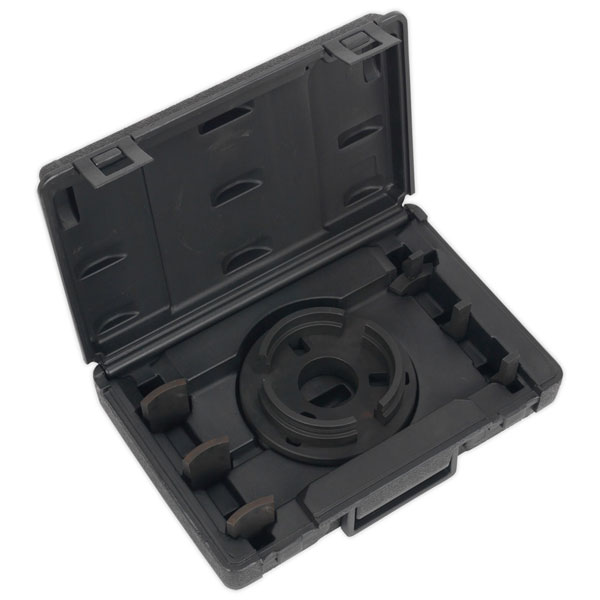 Designed to be used with a standard workshop press. Adjustable diameter and six interchangeable support legs provide quick alignment of hub or suspension frame for secure and level pressing. Ideal when removing and installing wheel bearings and bushes.