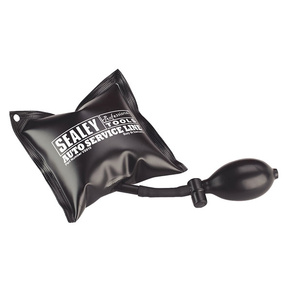 Durable air cushion device with rigid edges and fine air control valve. Suitable for positioning panels, bonnets and boots, prior to fitment. 2mm Bag thickness and semi-rigid construction allows bag to be slid between window frame and weather-stripping for improved access for emergency vehicle opening tools. Soft air cushion is gentle on paintwork, frame, beadings and glass.