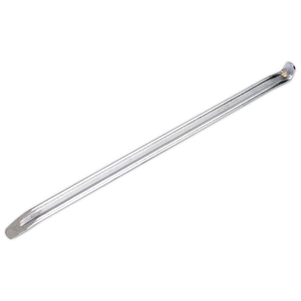 Hardened carbon steel tyre lever, with hook and taper ends.