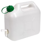 Heavy-duty fluid container. Manufactured from high impact polyethylene with sturdy carry handle. Fitted with screw cap and swivel tap for easy fluid control.