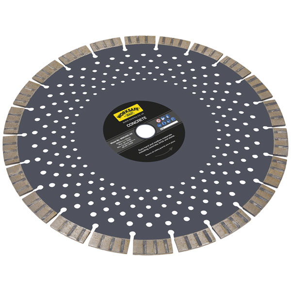 Ideal for cutting concrete. Cold pressed sintering allows the disc to be more durable. Can be used for dry-cutting. 15mm Diamond segments allow for longer use per disc.