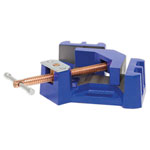 Cast iron welding vice to aid welding a 90° angle. Self centring swivel jaw allows two different size workpieces to be accurately welded. Copper plated spindle for resistance to weld spatter. Can be bench mounted through holes in the base.