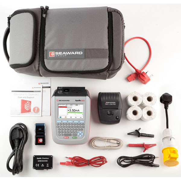 Apollo 600 Pro Kit contains: Apollo 600 PAT tester plus standard accessories Test 'n' Tag Pro lightweight portable printer 4x Test 'n' Tag printer 25 x 52mm label rolls Bluetooth barcode scanner Apollo kit carry case 110V adapter