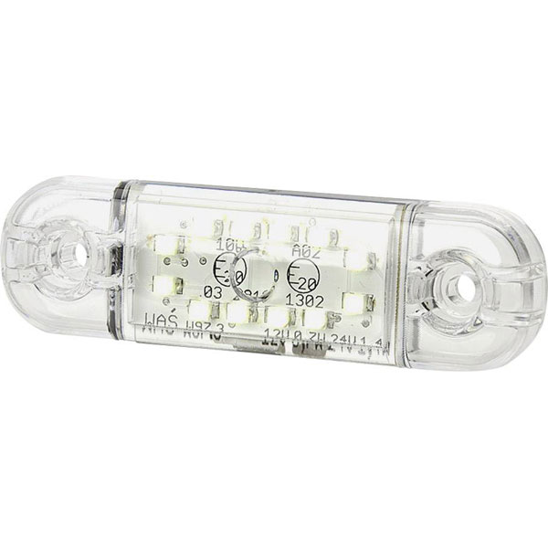SecoRüt 95716 is an LED perimeter light designed for clear illumination, featuring open cable ends and compatible with both 12 V and 24 V systems, making it versatile for a range of vehicular applications. Engineered with a white housing and clear glass lens, this lighting component is ideal for caravans, camper trailers, trailers, car trailers, and various vehicle and heavy goods vehicle (HGV) accessories. Its robust construction ensures reliability in harsh environments, commonly found in automotive and transportation sectors. As a key component of vehicle lighting, it provides essential visibility and perimeter marking for enhanced safety and compliance with road regulations.