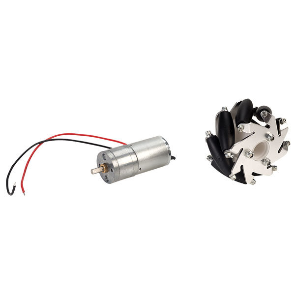 The Left Mecanum Wheel kit from Seeed Studio provides you with one driving wheel for your next robot project. The Mecanum wheels are remarkable as they give your robot unprecedented freedom of movement. With the correct arrangement of 4 x Mecanum wheels (2 x right, 2 x left) it's possible to make a robot move forwards, backwards, side-to-side and any angle in between. Mecanum wheels will even let your robot rotate on the spot. A downloadable library lets you use them without getting into the clever maths behind them unless you want to. The kit contains the wheel, a DC motor, mounting bracket and necessary hardware. Be prepared to go omni-directional.