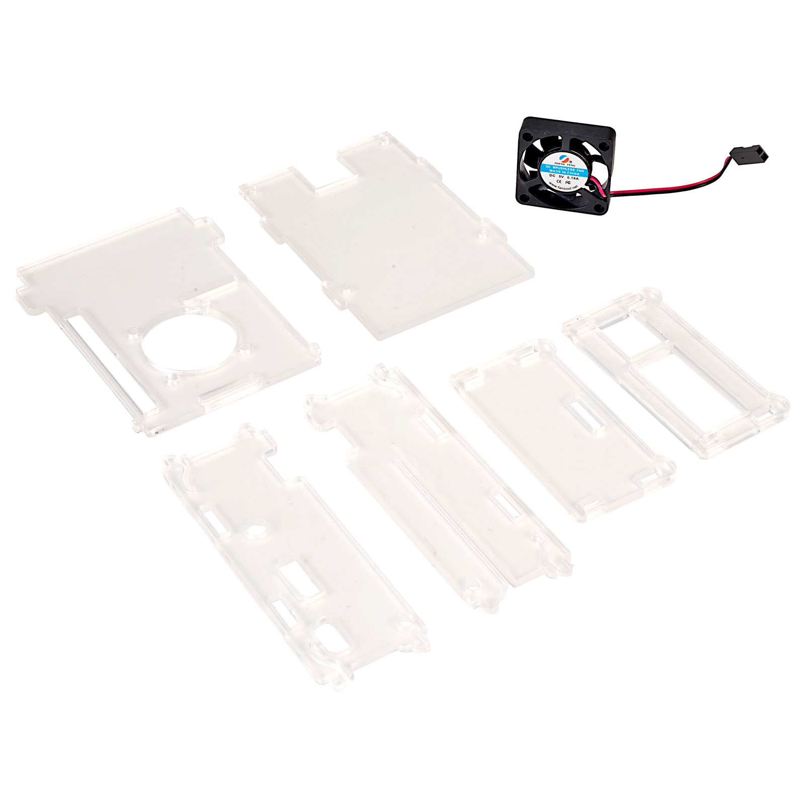 The Raspberry Pi Enclosure with Fan from Seeed Studio protects your Pi and keeps it cool with a built-in 30mm fan. Made from clear acrylic the case will house the Pi B+ or the Pi 2.