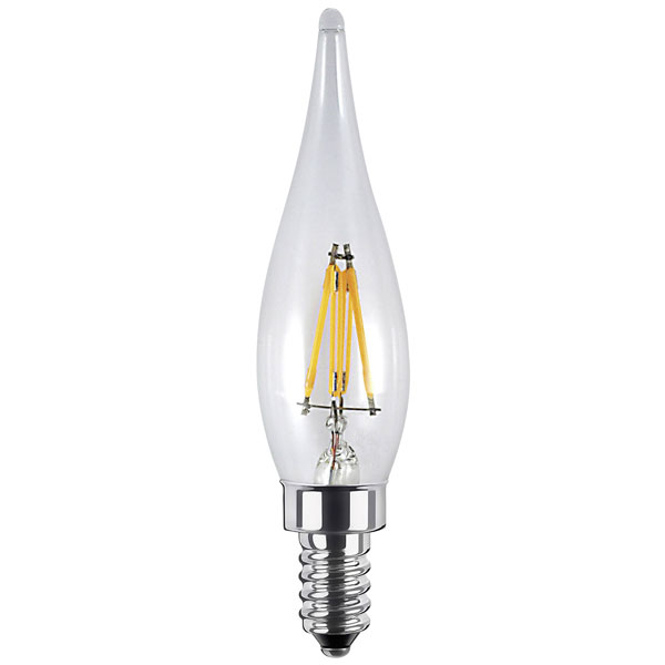 The Segula 55231 LED French Candle clear is a 1.5 W warm white LED bulb by Segula, measuring 22 mm in diameter and 88 mm in length. This energy-efficient, monochrome LED light is ideal for creating ambient lighting in homes or decorative settings. Typically used in fixtures requiring E10 fittings, it offers a warm, inviting glow.
