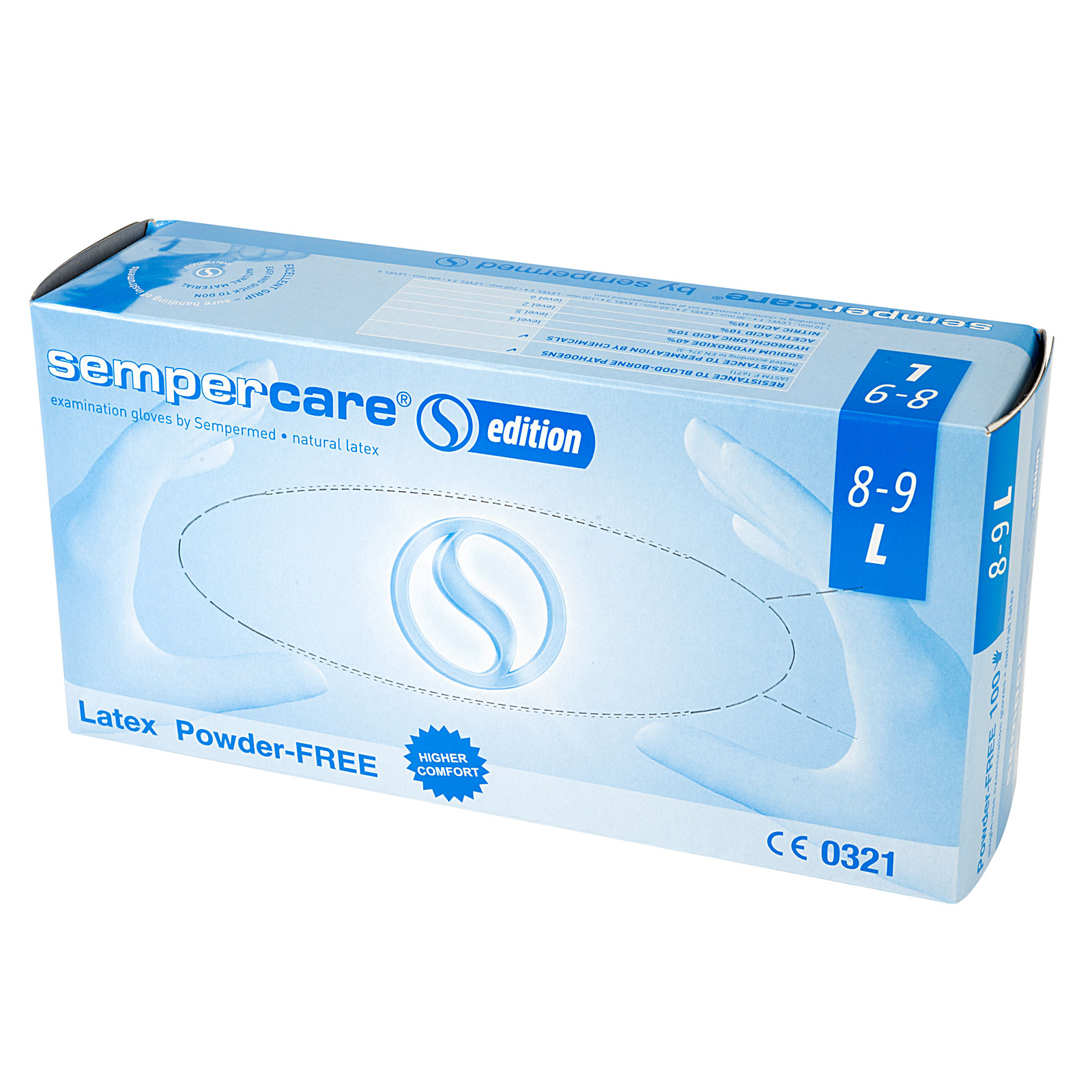 Powder-free latex gloves providing higher protection than vinyl, and maintaining integrity under prolonged use. Ideal for protecting the hands against degreasing and cleansing solvents, ferric chloride etchant, caustic soda based products and most other chemicals associated with the electronics industry.