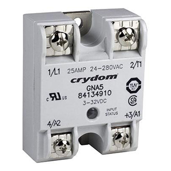 The Sensata Crydom 84134910 SSR Relay Panel Mount 280VAC 25A DC Input is designed for industrial control applications.