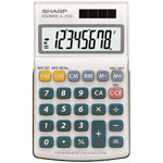 The Sharp EL-250 is an ergonomically shaped calculator with a large 8-digit display.
