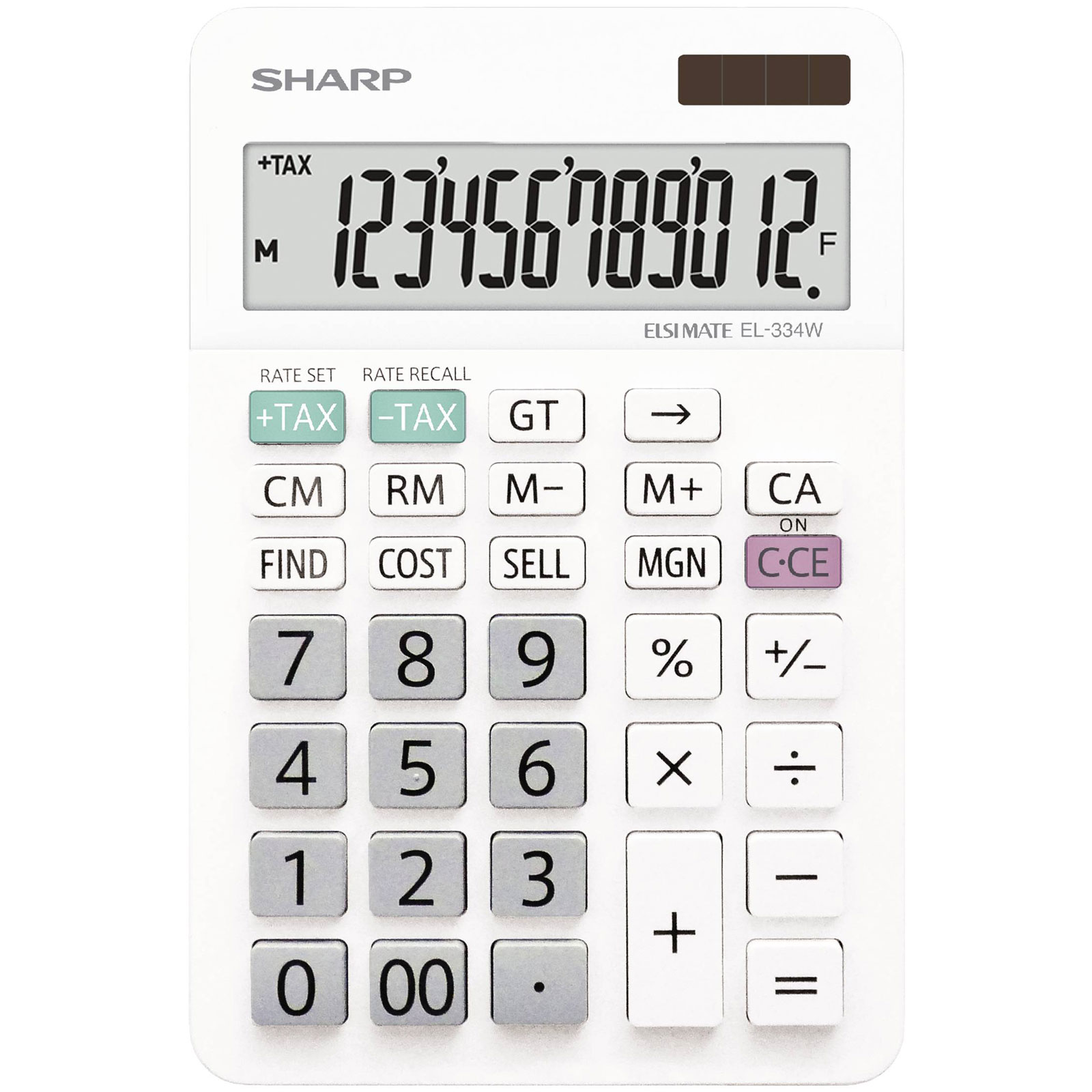 Sharp EL334W Calculator white extra-large display dual power battery solar
