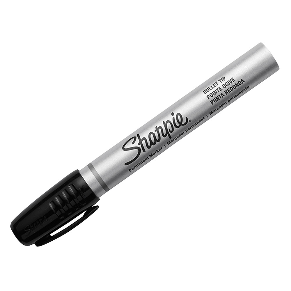 The Sharpie® Pro Small Bullet Tip Permanent Marker can be used on most surfaces. It has a 1mm tip with an extra long cap-off life of 10 days. The durable metal body makes it ideal for site use. The high-quality ink dries quickly and resists both fading and water.