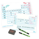 Show-me A4 Whiteboard Periodic Table Boards are A4 drywipe boards manufactured from 650 micron, anti-vandal, grade A PVC, printed with the framework, but not the symbols, of the periodic table.