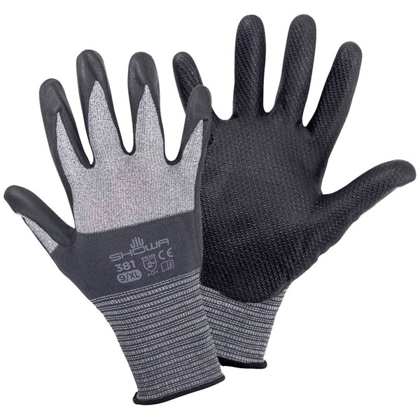 Showa 4704XL Work Gloves: Nitrile Size 9 XL Spandex EN 388 CAT II