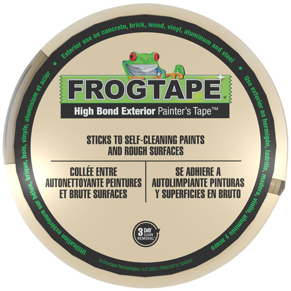 FrogTape® High Bond Exterior Painter's Tape™ is the only painter’s tape engineered to consistently adhere to hard-to-stick surfaces. Plus, the conformable crepe paper backing makes it easy to mask around exterior surfaces like doorways and windows. This very high adhesion, exterior tape offers 3-day clean removal without shredding or leaving residue behind.