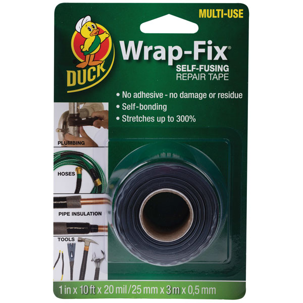 Shurtape Duck Tape® Wrap-Fix® Self-Fusing Repair Tape provides a watertight seal. It is self-bonding and stretches up to 300%. No adhesive, no damage or residue. Ideal for plumbing, auto, marine and general-purpose applications.