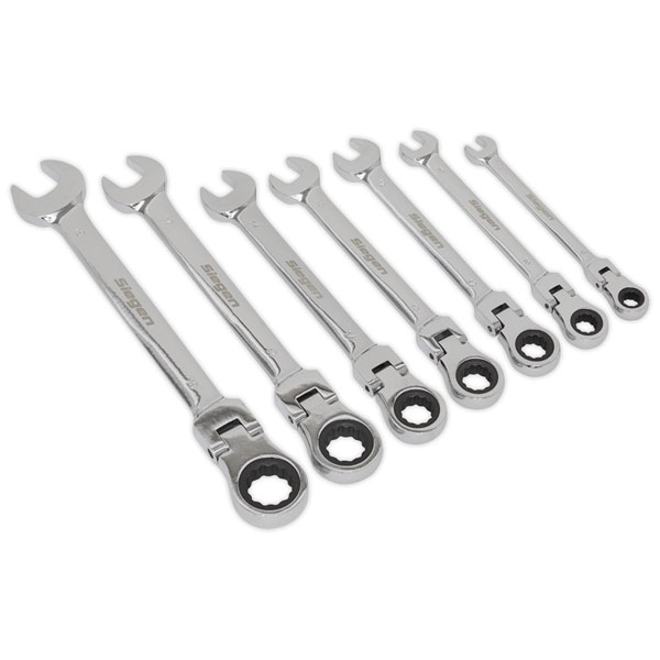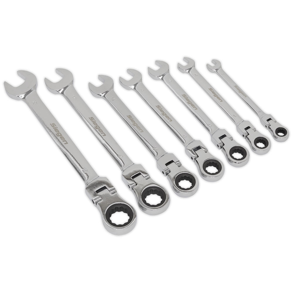 Siegen S01143 Flexible Head Ratchet Combination Spanner Set 7pc Metric