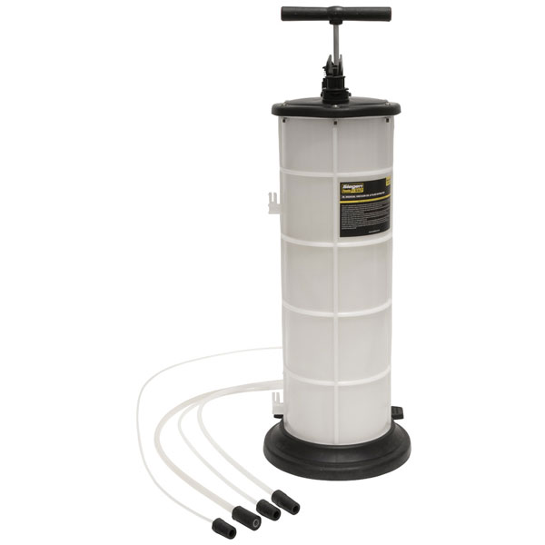 9L Capacity device constructed from composite materials. Uses manual pump to generate vacuum. Suitable for the extraction of all types of engine, transmission and lubricating oil from cars, motorcycles, marine engines, stationary engines and industrial machinery. Also suitable for low viscosity fluids such as water. Supplied with Ø4, Ø6, Ø8 and Ø10 x 1000mm suction probes and Ø4 x 600mm brass extension tube. Uses probes to extract engine oil through the dipstick tube.