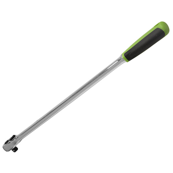 Chrome Vanadium steel 72-tooth extra long ratchet wrench, hardened and tempered, with a fully polished mirror finish. Features pear-head with flip reverse, push-button quick release and anti-slip comfort grip.
